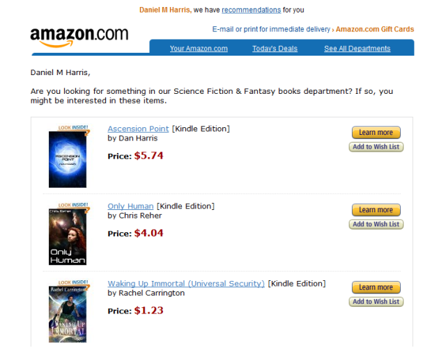 This made me laugh. It doesn’t take much to climb the Bestseller Rankings for the Amazon.co.uk Kindle Store, it seems. Yesterday ASCENSION POINT was languishing at #251,110. But then…